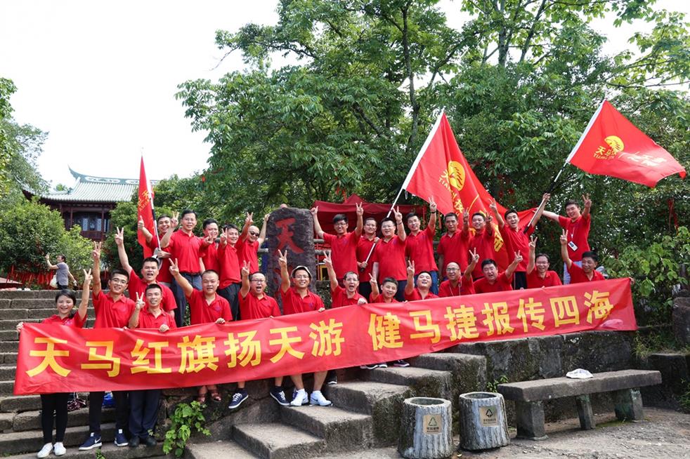 天馬科技訊 “天馬紅旗揚天游,健馬捷報傳四海。”7月19日,世界自然與文化雙世遺產勝地武夷山天游峰頂傳來天馬人的陣陣爽朗的笑聲。為豐富、活躍集團員工的業余文化生活,和著2017年半年度經營分析會擂響的戰鼓,天馬科技在經營分析會結束后,組織三十多名集團精英代表挑戰自我,開展了勇攀武夷山第一勝地天游峰活動,并在其后進行九曲漂流、觀看《印象大紅袍》山水實景演出,體驗武夷山文化,積蓄沖刺年度經營目標的力量。