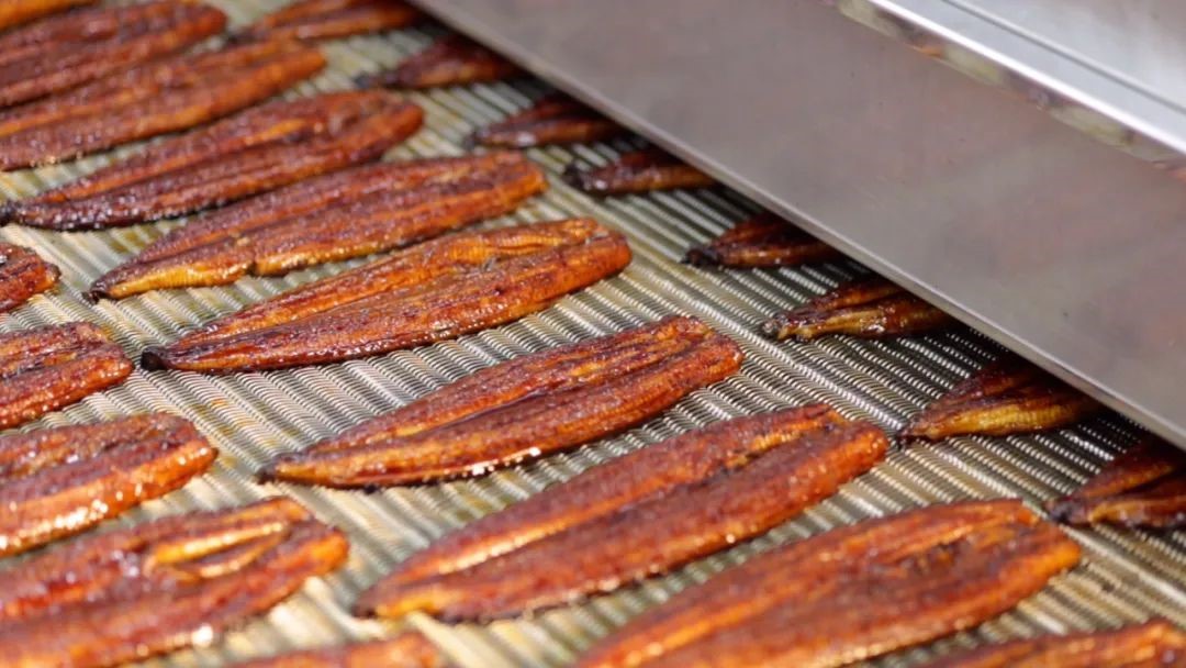 在天馬科技加工廠房,烤鰻生產線高效運轉?!拔覀儗Ⅵ狋~制成白燒、蒲燒、串燒、烤肝串等各類產品,年產1500噸,產銷量均全國領先。”天馬食品公司銷售負責人說,近年來,公司鰻魚食品類新品強勢崛起,產線開滿、產銷兩旺,去年一年線上銷量增速超300%?!案V菔强决牭摹澜绻S’,我們還打算在福州打造觀光式食品超級工廠,新建兩條烤鰻生產線,預計產能6000噸。”